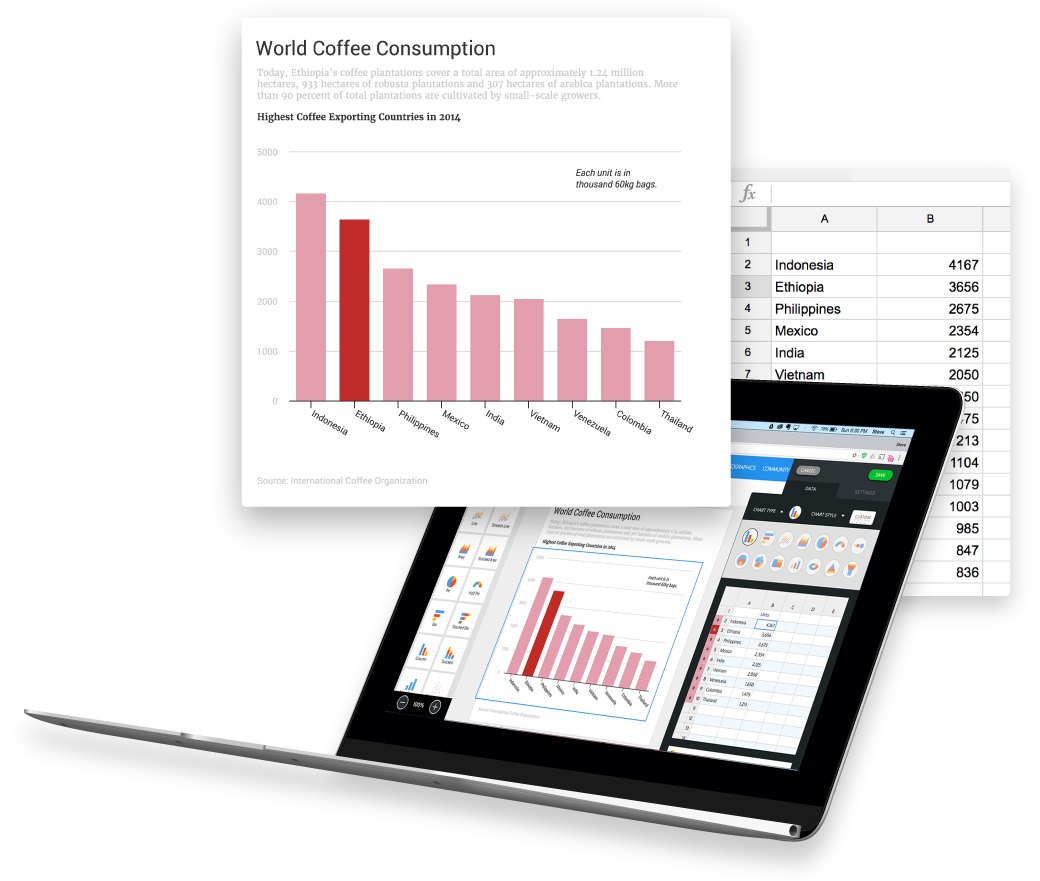 Cuenta tus historias y presenta tus datos con infografías.