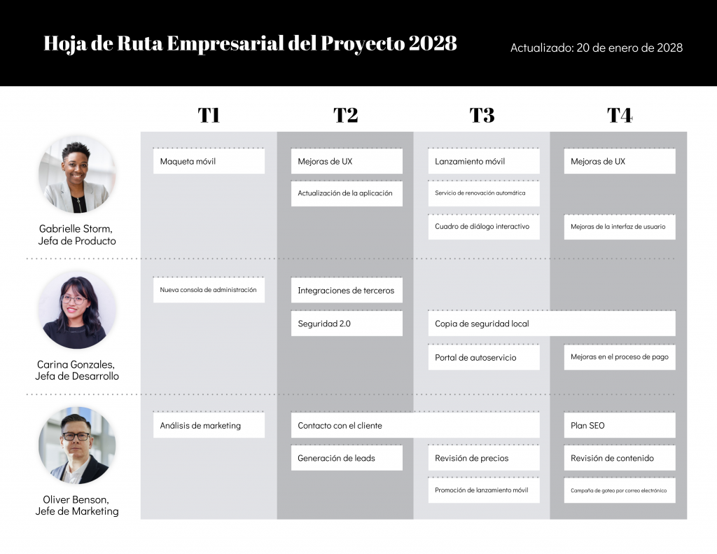- Actualizar periódicamente: una hoja de ruta viva debe adaptarse a los cambios del proyecto o del entorno.