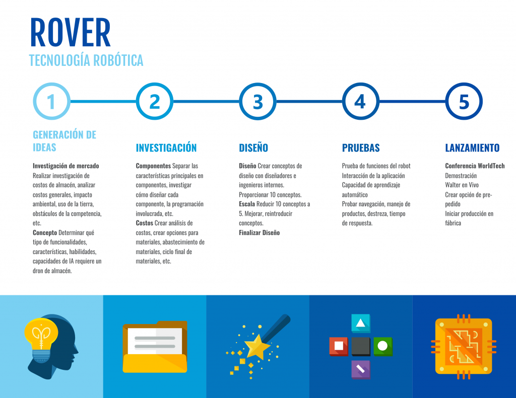 - Asignar responsabilidades: incluye equipos o personas clave en cada fase para garantizar un flujo de trabajo organizado.