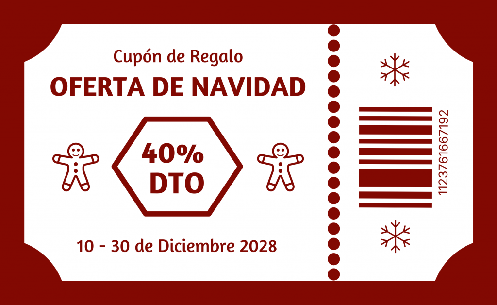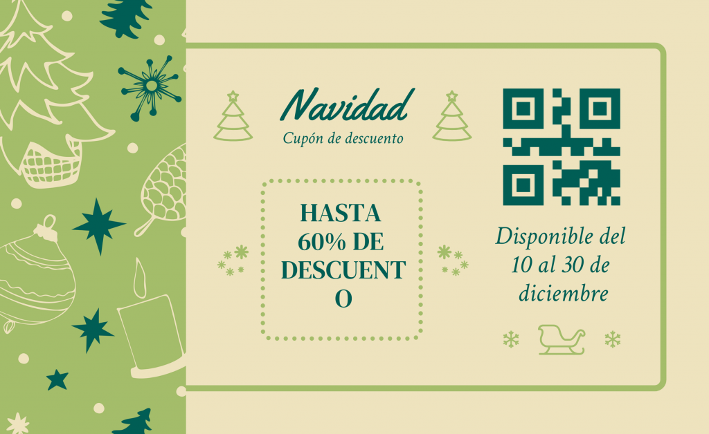 - Cupones navideños para negocios: perfectos para promociones estacionales, descuentos de fin de año, tarjetas de regalo y campañas navideñas.