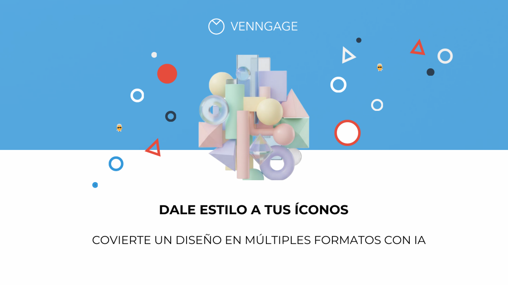Aquí es donde entra el Generador de Íconos con IA de Venngage, una herramienta incluida dentro del Creador de Diseños con IA, que te permite generar múltiples versiones del mismo concepto manteniendo consistencia visual y sin necesidad de saber ilustración. Solo necesitas un prompt corto y claro.