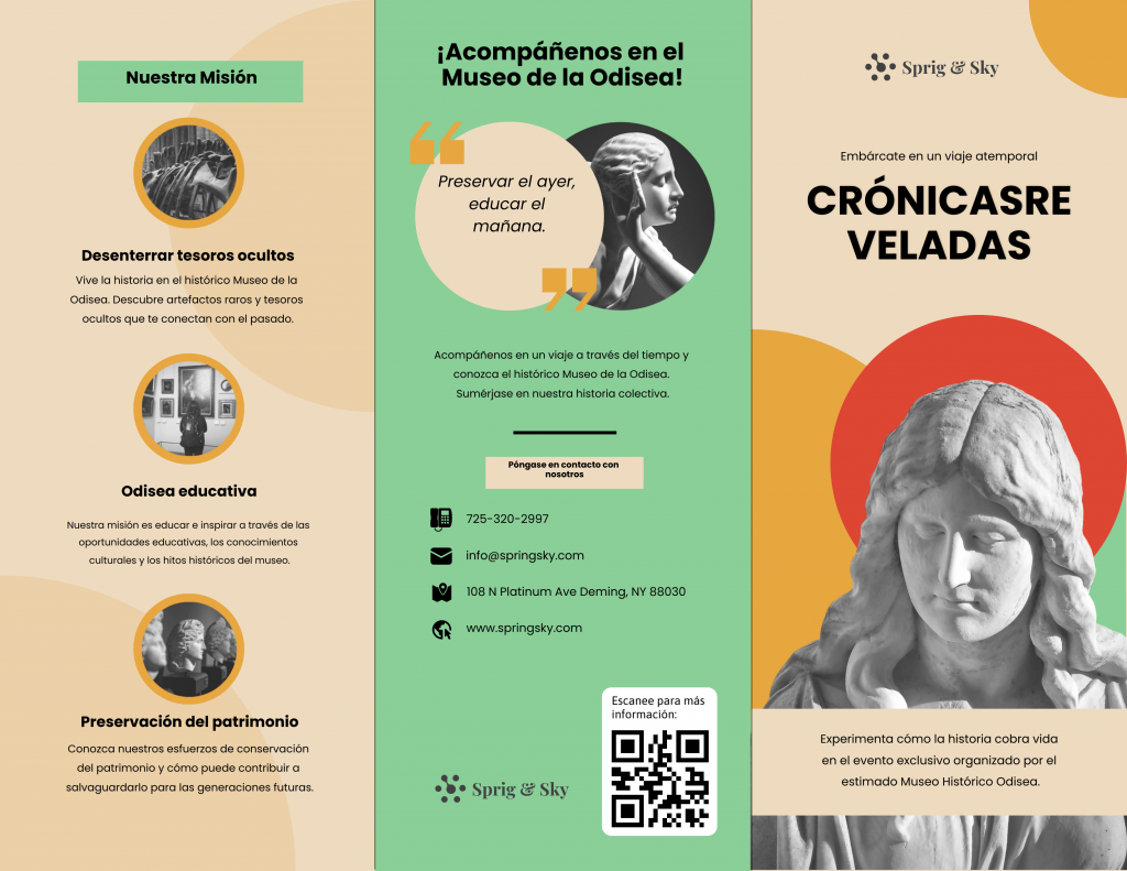 - Folleto informativo institucional: Presenta misión, visión y servicios. Perfecto para universidades, museos, gobiernos locales y fundaciones.