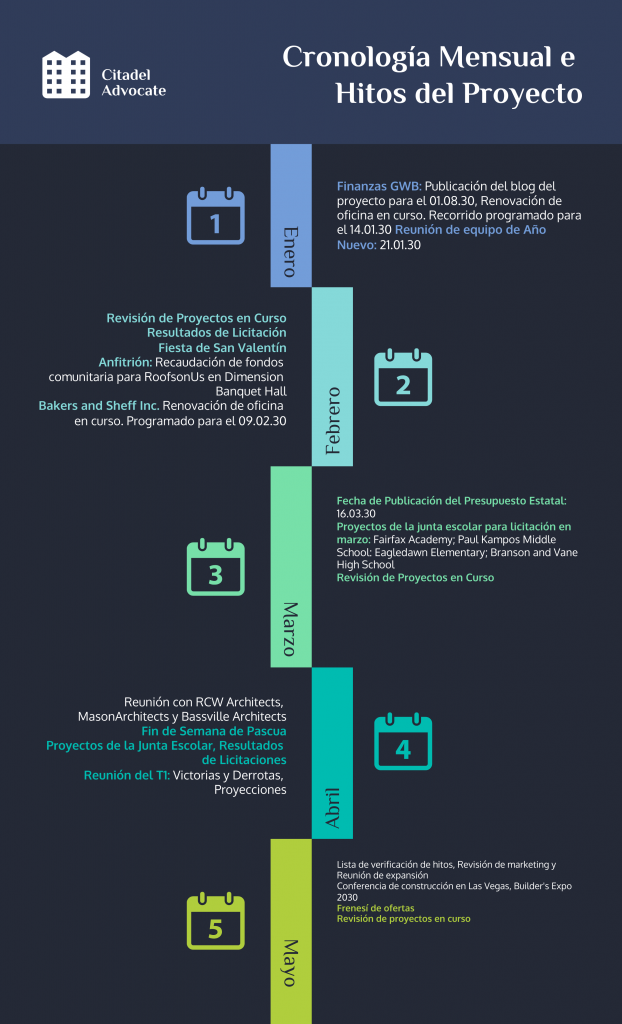 - Claridad visual: cada hito o evento debe destacarse de manera natural, sin saturar la vista. Los espacios, las líneas y los colores ayudan a mantener la lectura fluida.