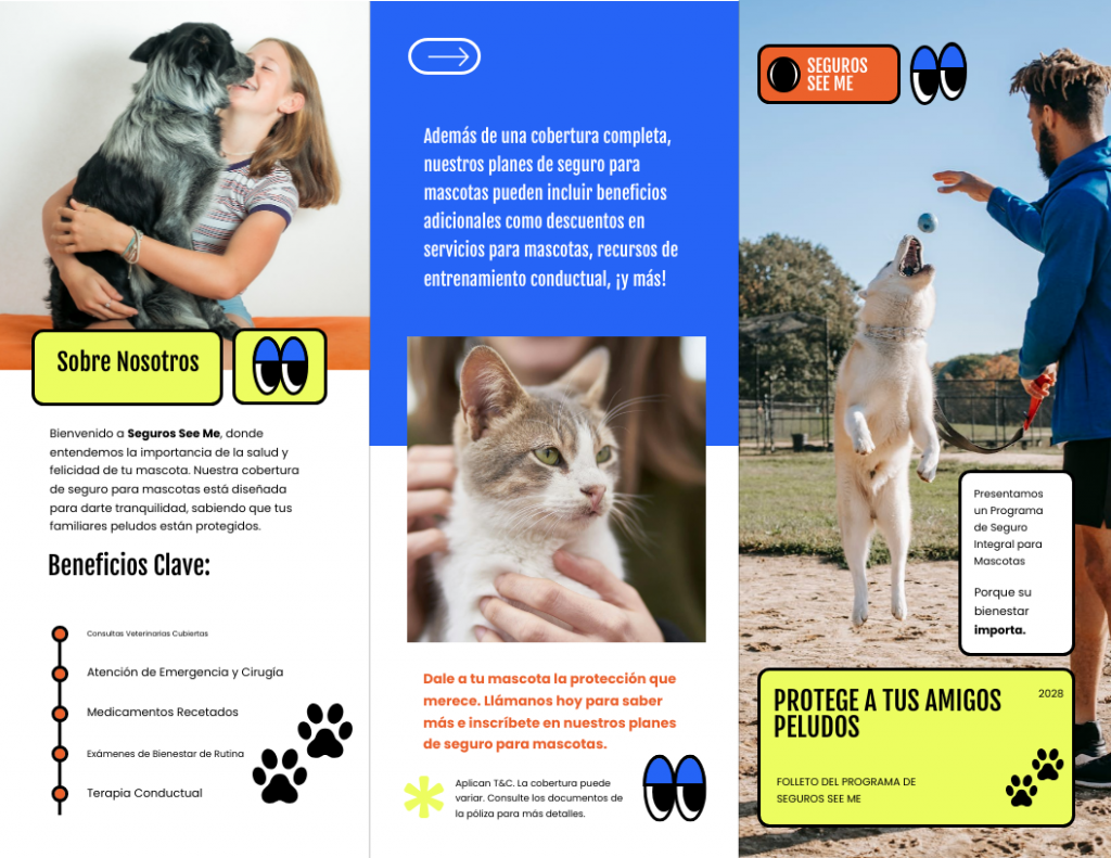 Usa el Generador de Folletos con IA de Venngage para crear folletos con una personalidad tan llamativa como la de tus mascotas.