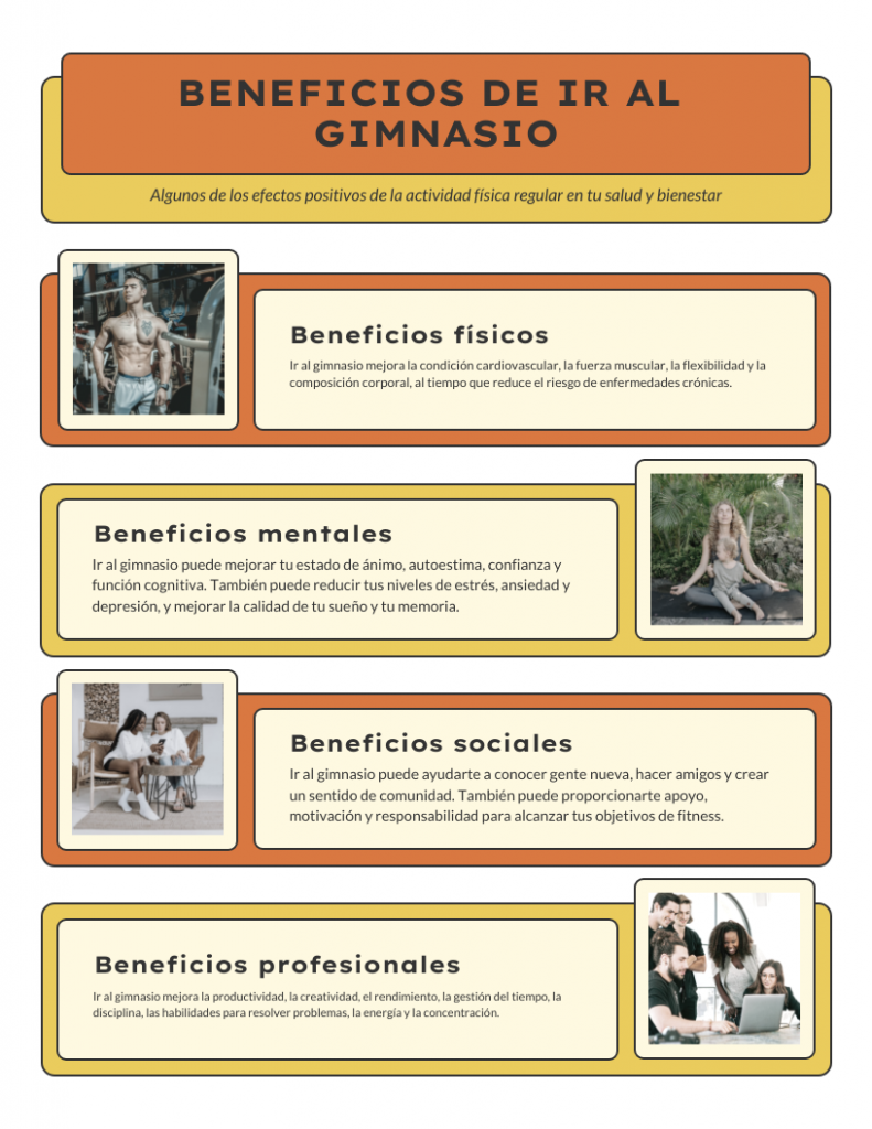 Gráficos claros, mensajes motivacionales bien pensados y materiales visuales fáciles de entender ayudan a que las metas se sientan alcanzables y visibles en el día a día. No necesitas plantillas perfectas ni composiciones complicadas: basta con usar el diseño para recordar, simplificar y acompañar el progreso de quienes están volviendo al gimnasio.