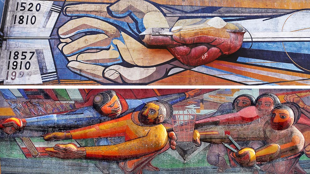 Su composición está cargada de energía: manos extendidas, cuerpos en tensión y líneas diagonales que impulsan la mirada hacia adelante, como si el mural respirara movimiento. Es una celebración del trabajo, la unión y el progreso colectivo, temas centrales del México postrevolucionario.