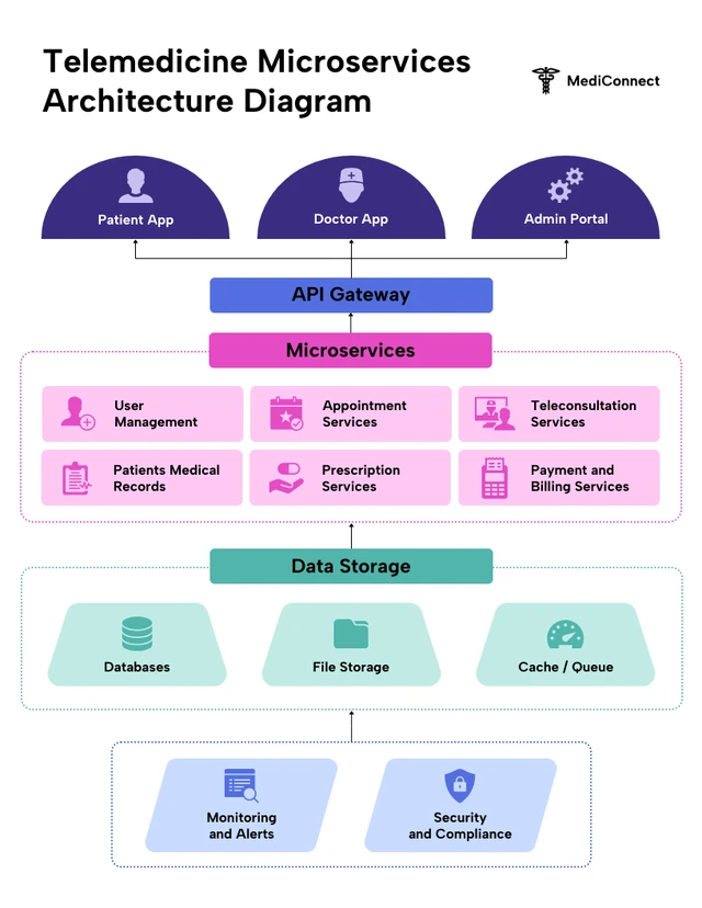 Nuestra Plantilla de Diagrama de Arquitectura de Microservicios está diseñada para ayudarte a comunicar de manera efectiva las interacciones complejas dentro de tu sistema. Esta plantilla es el diseño ideal para promover y difundir la información. Ya sea que estés planeando una presentación, dando un informe a un equipo o simplemente organizando tus ideas, este diagrama proporciona un marco visual claro para ilustrar los microservicios individuales y sus interdependencias. Personaliza todo lo que necesites, ajusta colores, modifica tamaños y accede a nuestra extensa colección de fotos o íconos de stock gratuitos para adaptar el diseño a tus necesidades específicas. Con Venngage, crear tu diagrama de arquitectura de microservicios ideal es simple e intuitivo. ¡Libera tu creatividad y claridad con una representación visualmente convincente que da vida a tu arquitectura!