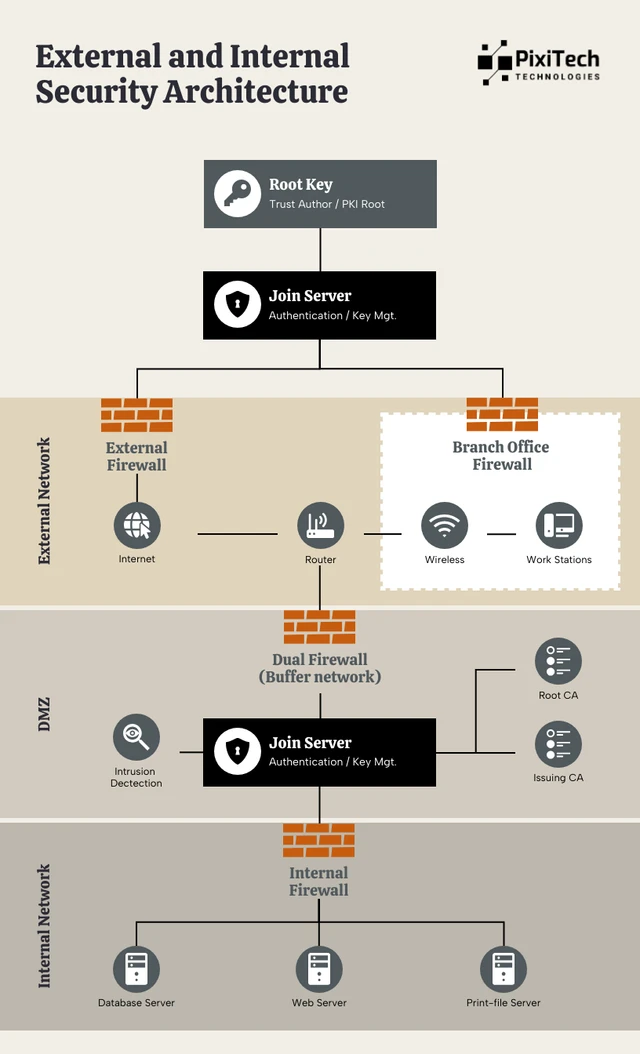 Nuestra plantilla de diagrama de arquitectura de seguridad es ideal para ilustrar de manera clara y concisa sistemas de seguridad complejos. Ya sea que estés visualizando cortafuegos, sistemas de detección de intrusiones o protocolos de red, esta plantilla ofrece un diseño estructurado para ayudarte a representar el flujo de información de seguridad de forma fluida. ¡Esta plantilla es el diseño ideal para promocionar y dar a conocer tus ideas! ¡Personalízala tanto como necesites! Añade colores que coincidan con las pautas de tu marca, ajusta tamaños para que se adapten a tus necesidades de presentación y elige las mejores fotos o iconos de nuestras bibliotecas de imágenes gratuitas para crear un diseño único. Con el editor intuitivo de arrastrar y soltar de Venngage, crear un diagrama de arquitectura de seguridad convincente nunca ha sido tan fácil ni tan efectivo. Haz que tus datos trabajen para ti y transmite tu estrategia de seguridad con claridad y impacto.